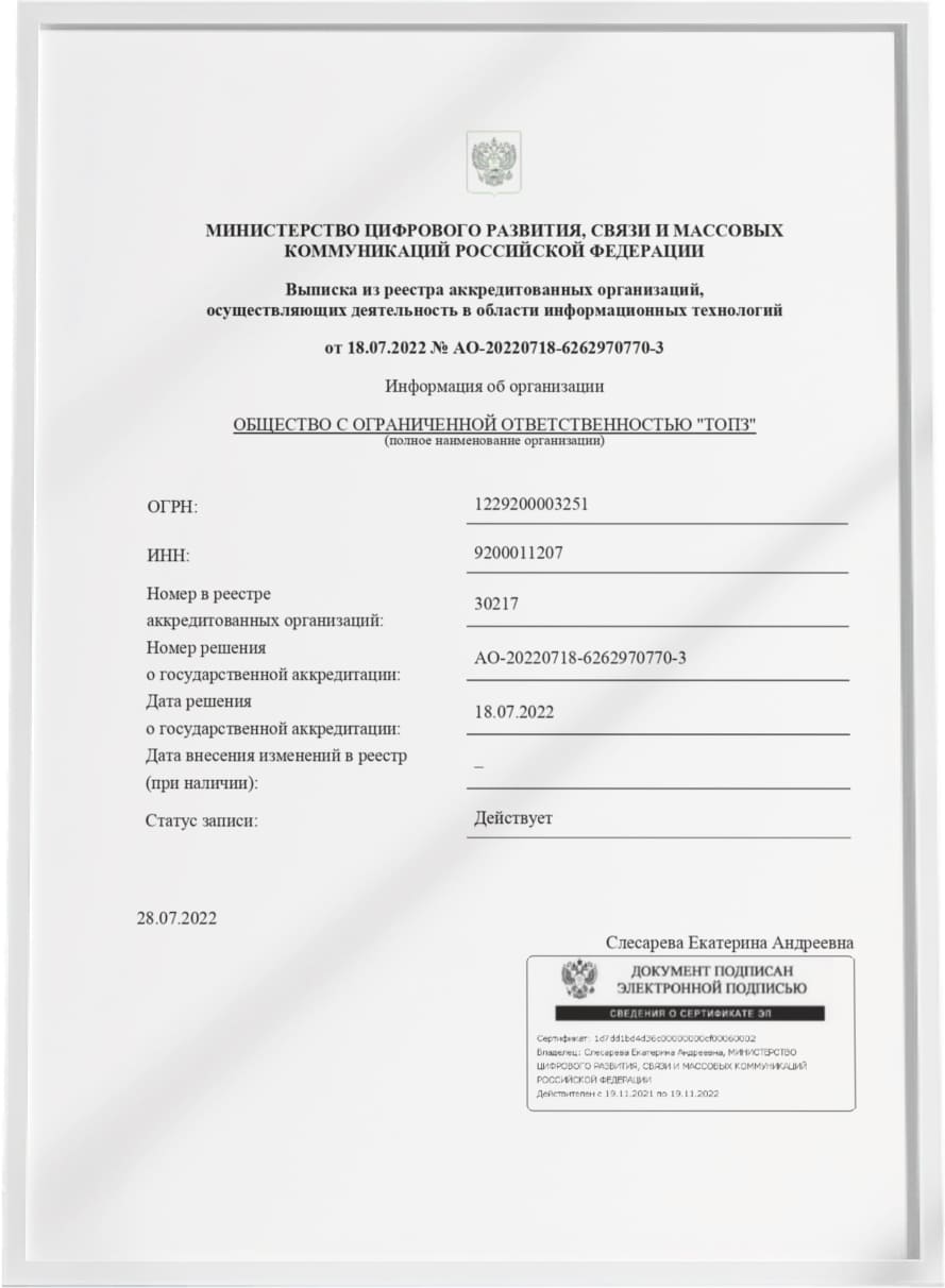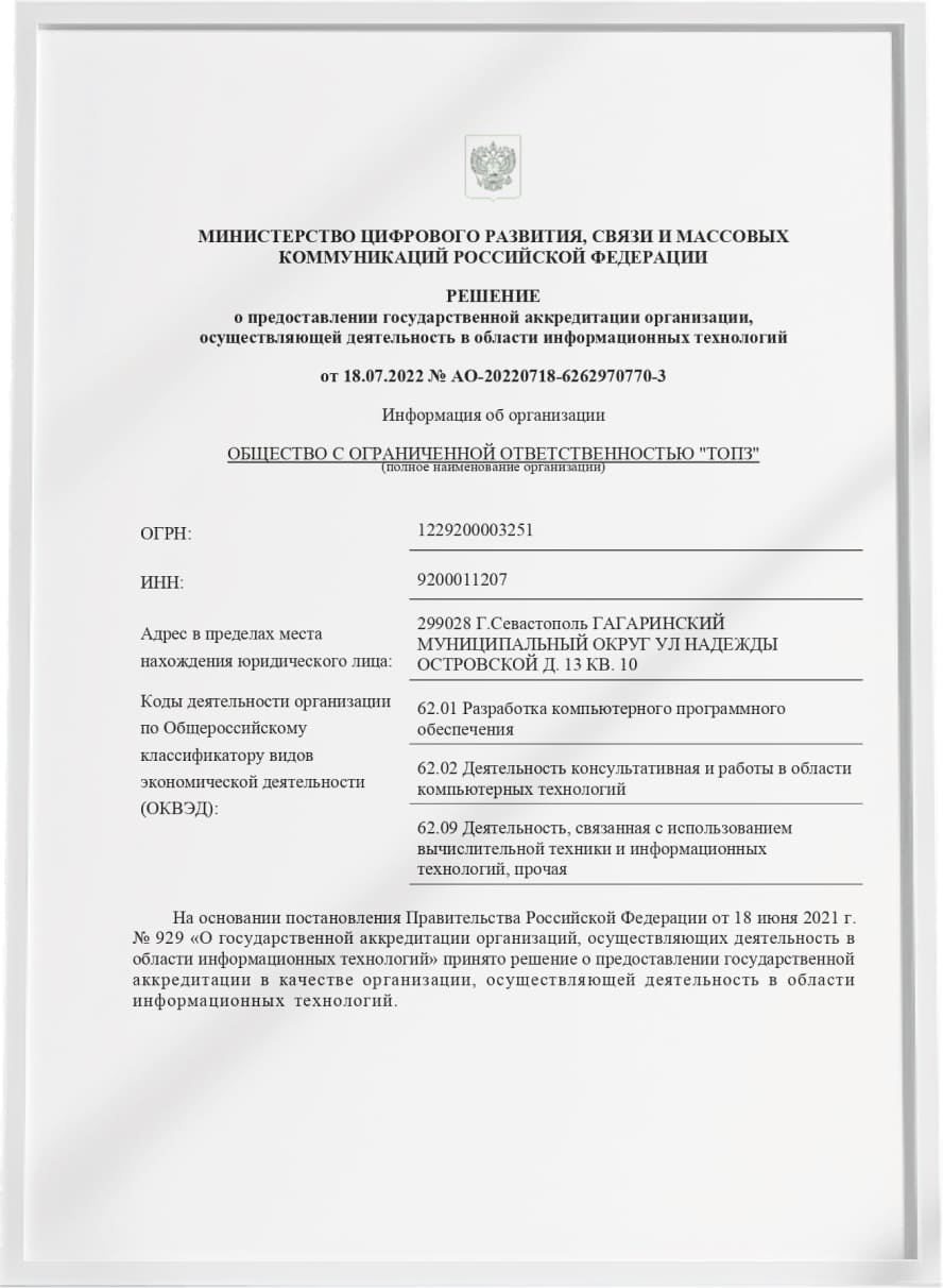 Государственная аккредитация по осуществлению деятельности в сфере IT